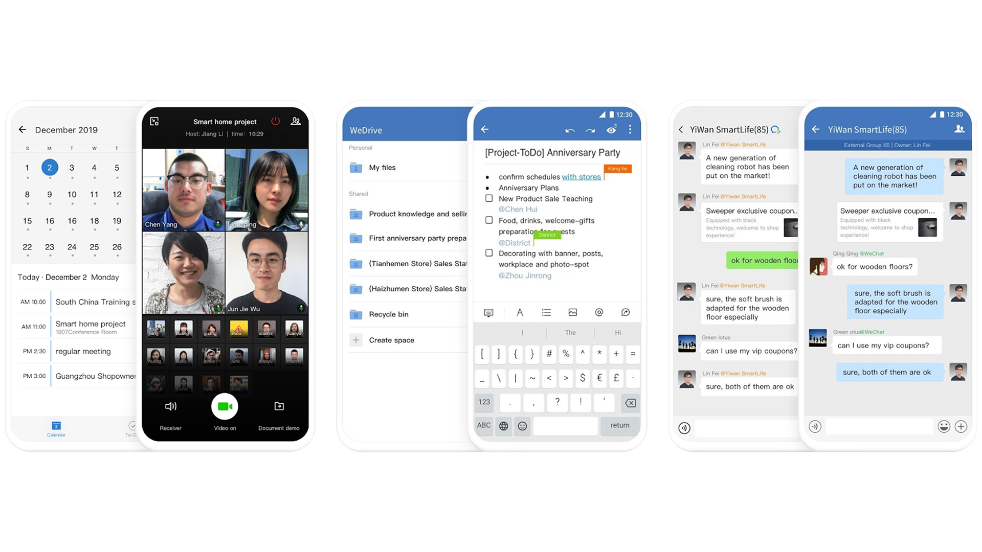 - WeCom — Помимо «гражданской» версии WeChat, у Tencent есть и корпоративный суперапп. Из функций: корпоративный мессенджер, CRM, автоматизация офисной рутины, работа со счетами клиентов и подрядчиков, видеоконференцсвязь, ИИ-функции.