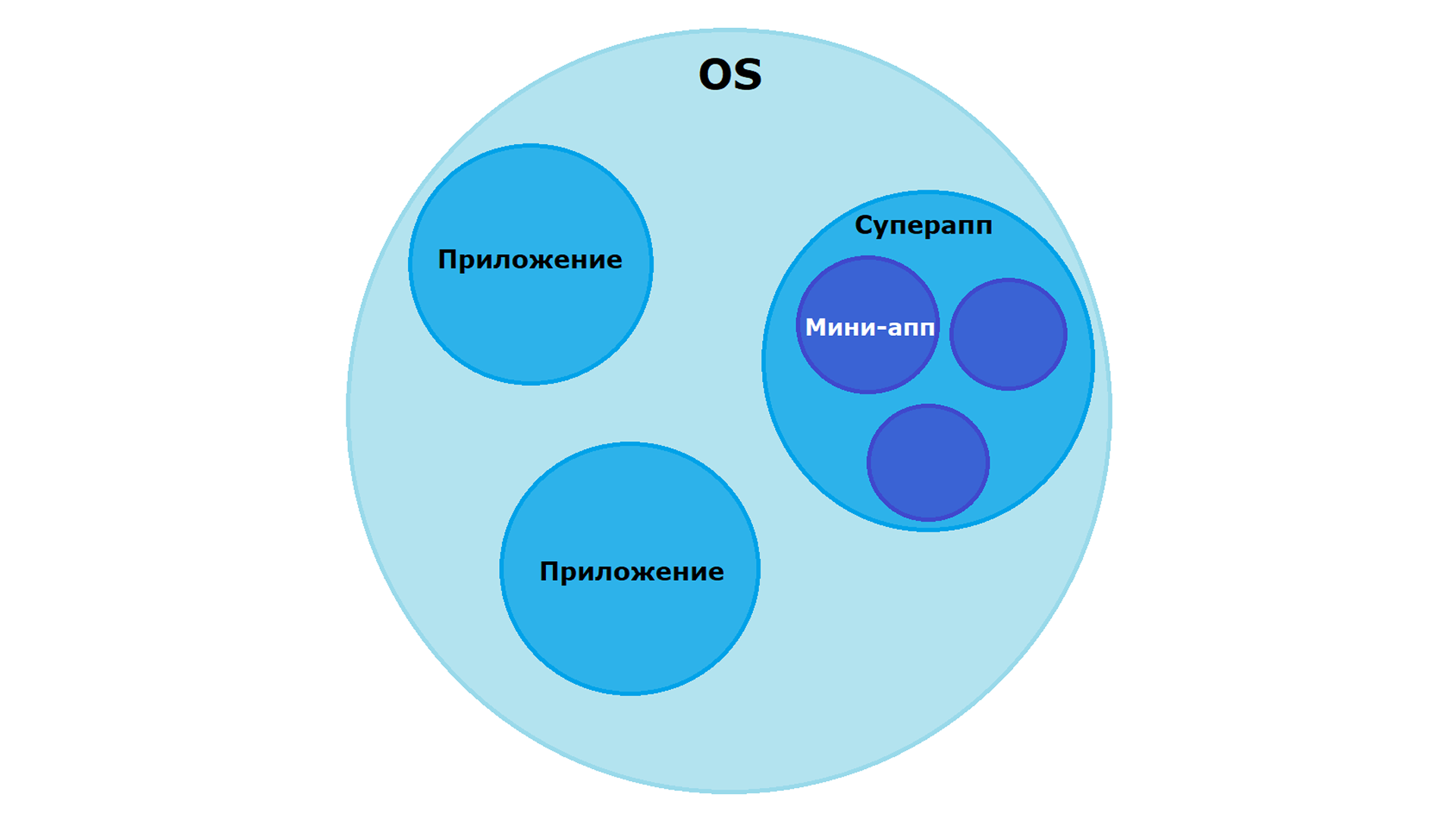 Суперприложения стоит рассматривать как своего рода замкнутую операционную систему внутри приложения, предоставляющую инструментарий и платформу для запуска мини-приложений (мини-аппов). Получается такая «луковица»: