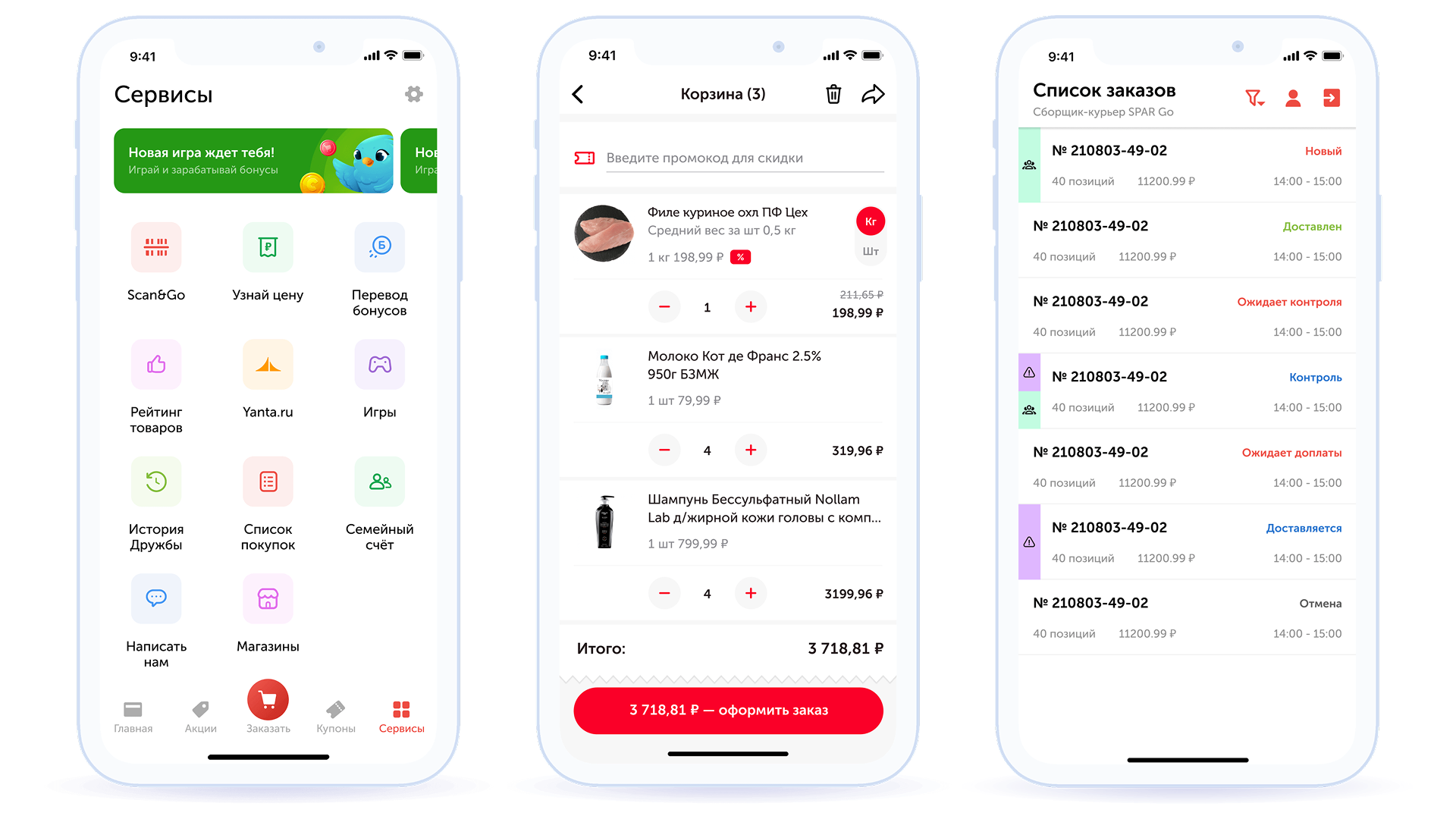 Цифровая экосистема SPAR, разработанная Siberian.pro, включает интернет-магазин, доставку, программу лояльности, внутреннюю платежную систему (бонусы), приложение для сборщиков заказов, геймификацию и многое другое.