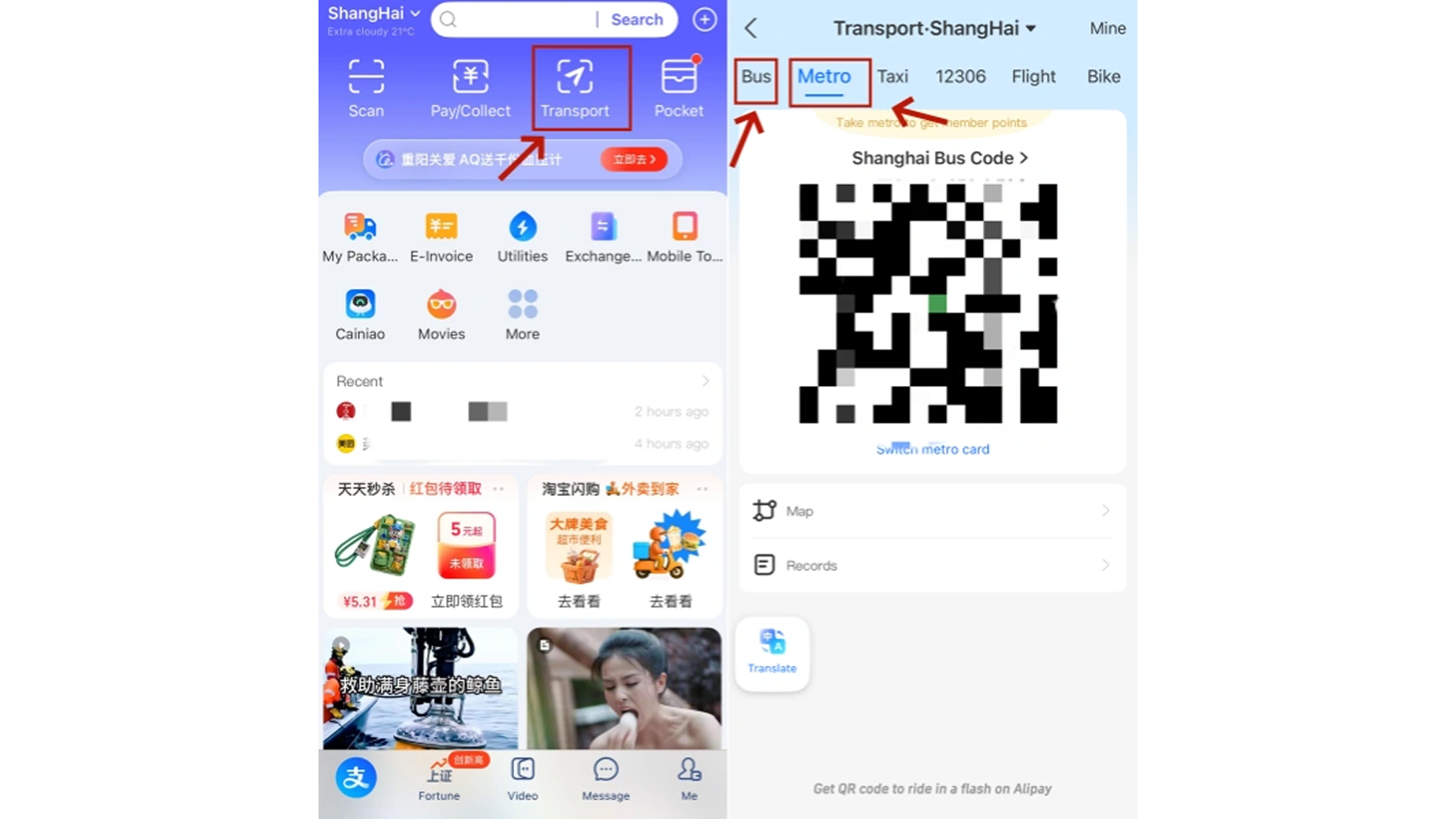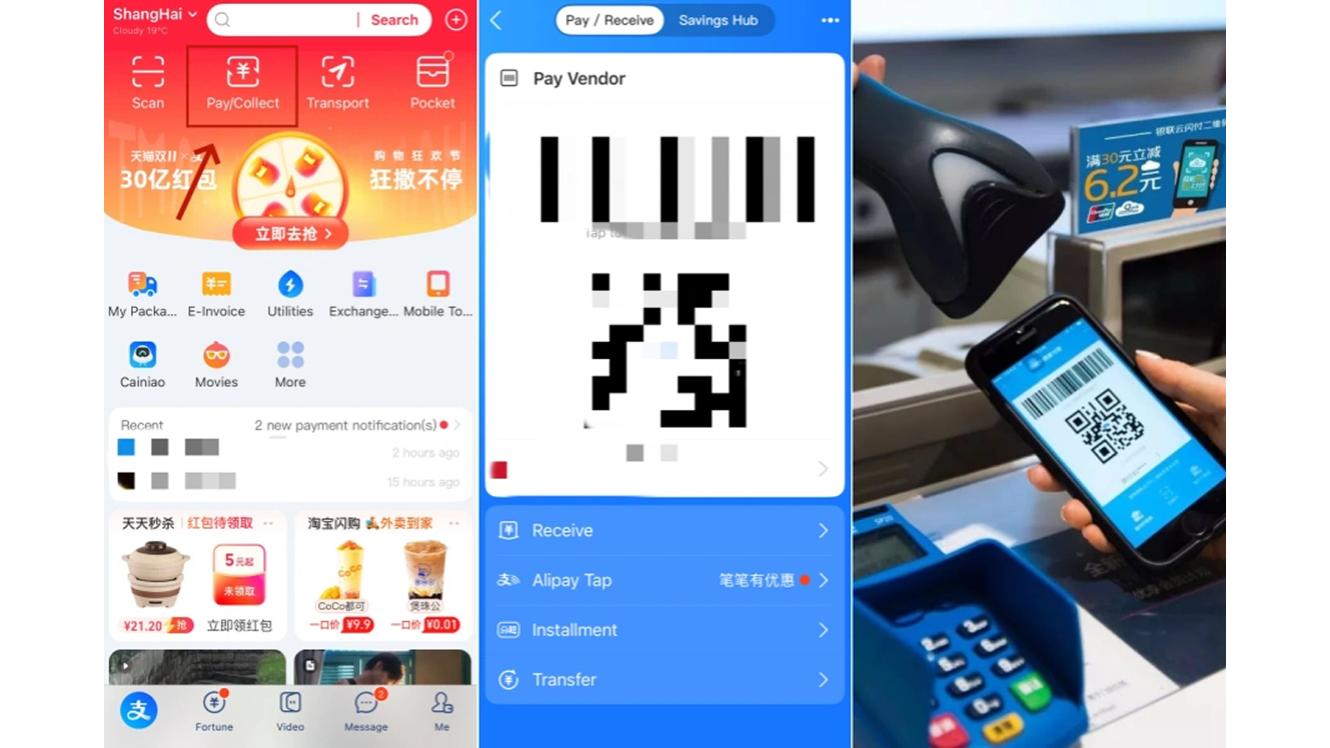 Оплата проезда на автобусе, метро, такси, самолете и аренда велосипеда. Здесь же видны: отслеживание и отправка посылок, выставление счетов, денежные переводы, маркетплейс, смешные видосики. Источник: Alipay