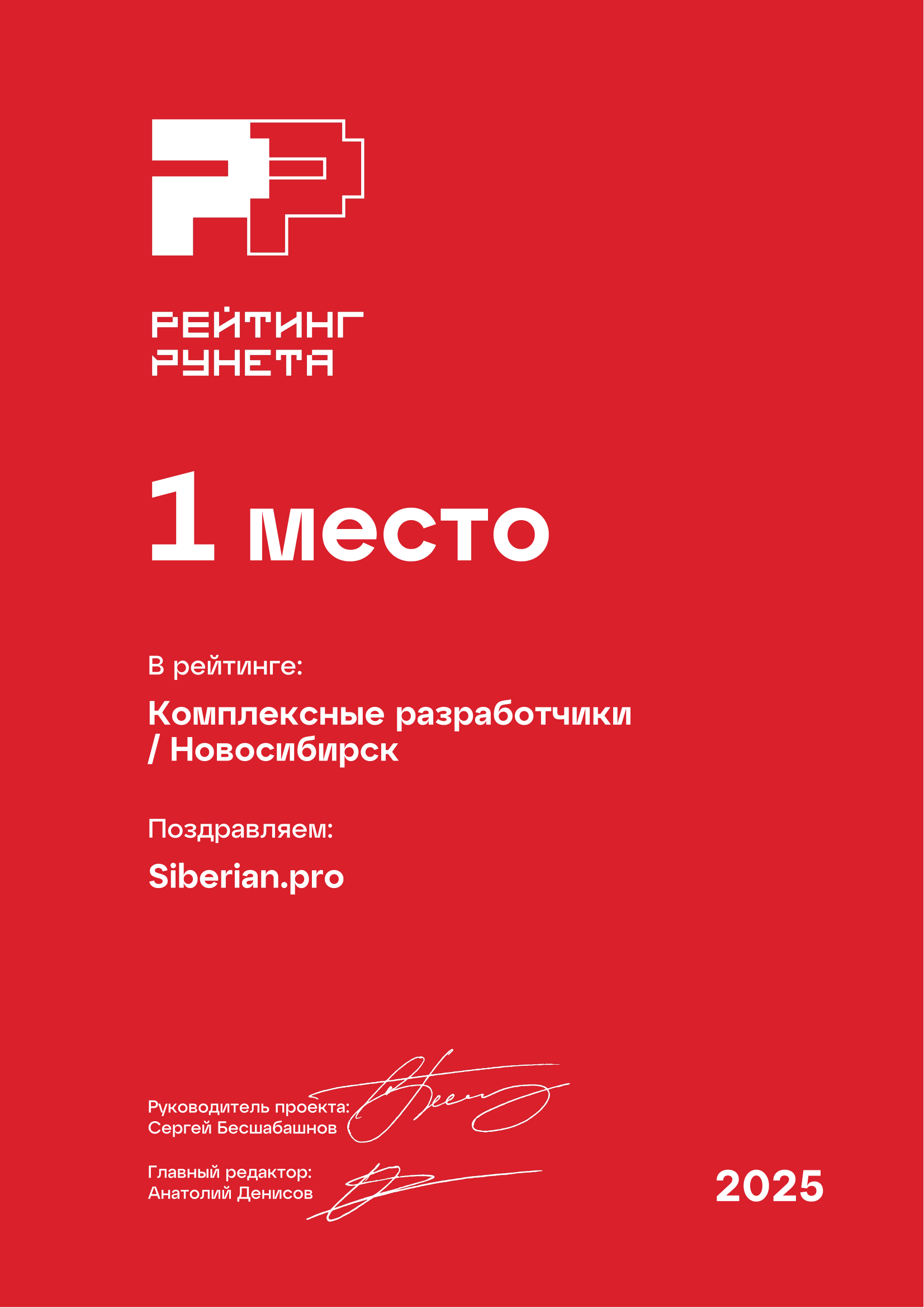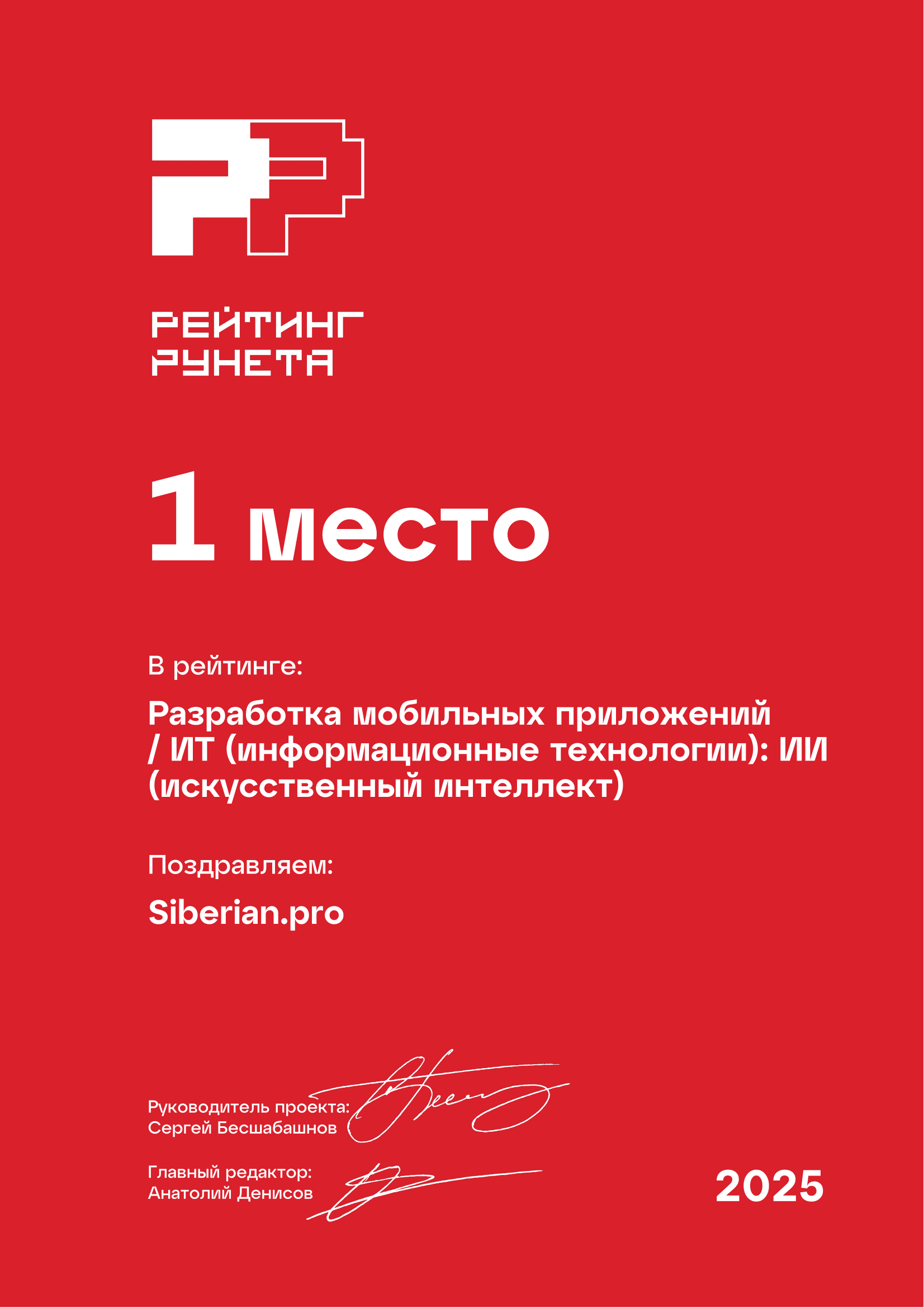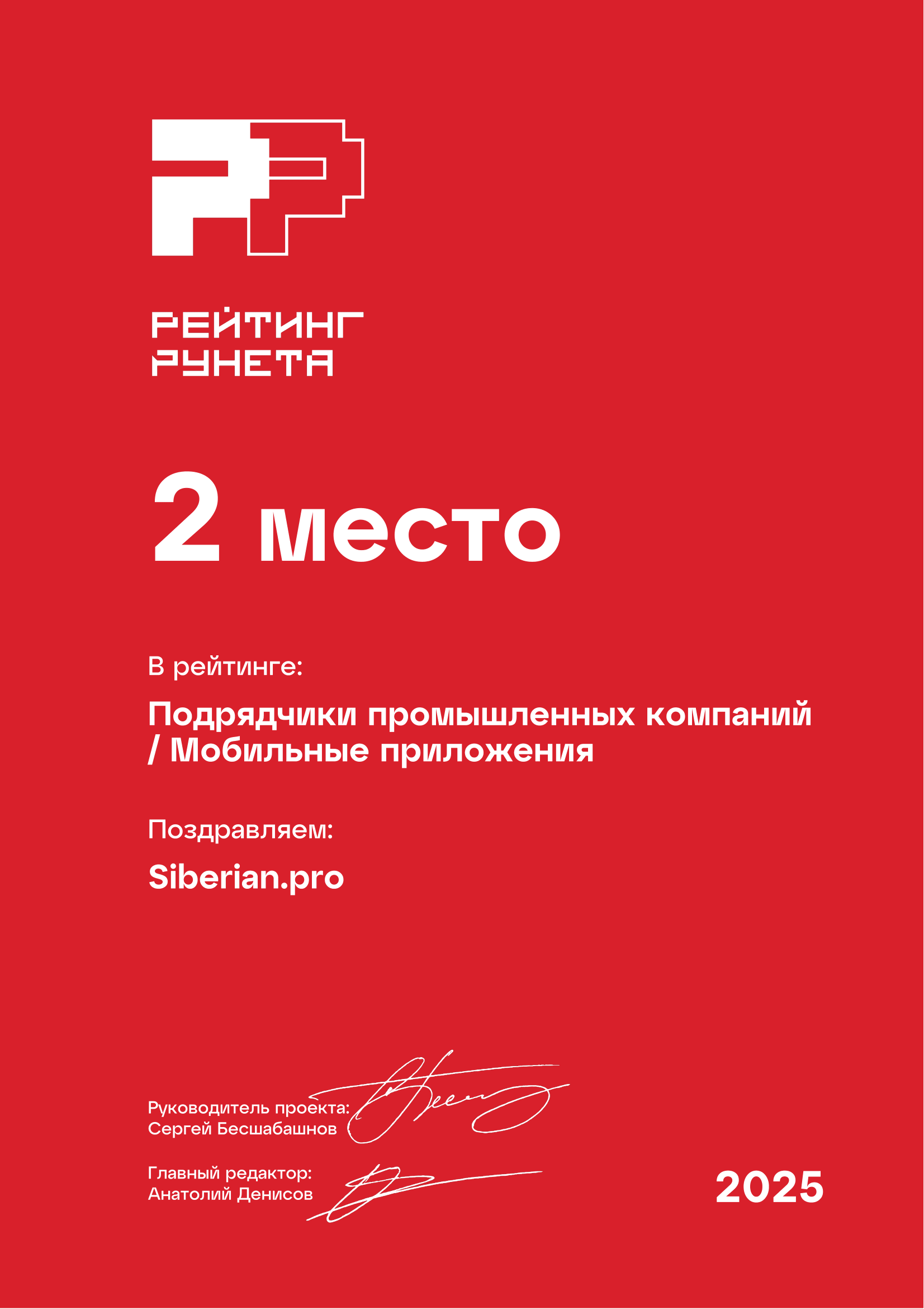 Компания Siberian.pro не первый раз участвует в «Рейтинге Рунета», и уже второй год подряд входит в десятку лучших разработчиков России. Характерно, что 7-е место компания заняла в категории сложных мобильных приложений