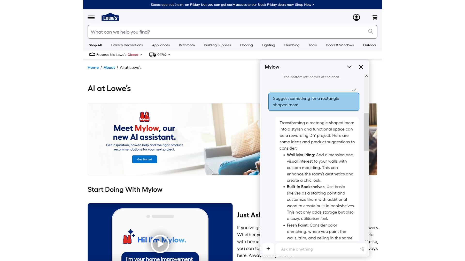 Например, магазин товаров для дома Lowe использует ассистента для ответов на вопросы клиентов, советов по планировке интерьера и подбора подходящих товаров, исходя из контекста вопроса.