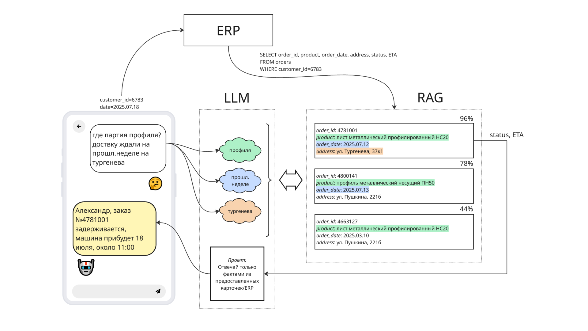 То же самое применимо для юридических отделов или отделов продаж практически любой организации. LLM, усиленная технологией RAG, моментально анализирует нормативные документы и судебную практику или данные о заказах из ERP, поддерживая соответствие требованиям и экономя время экспертов.