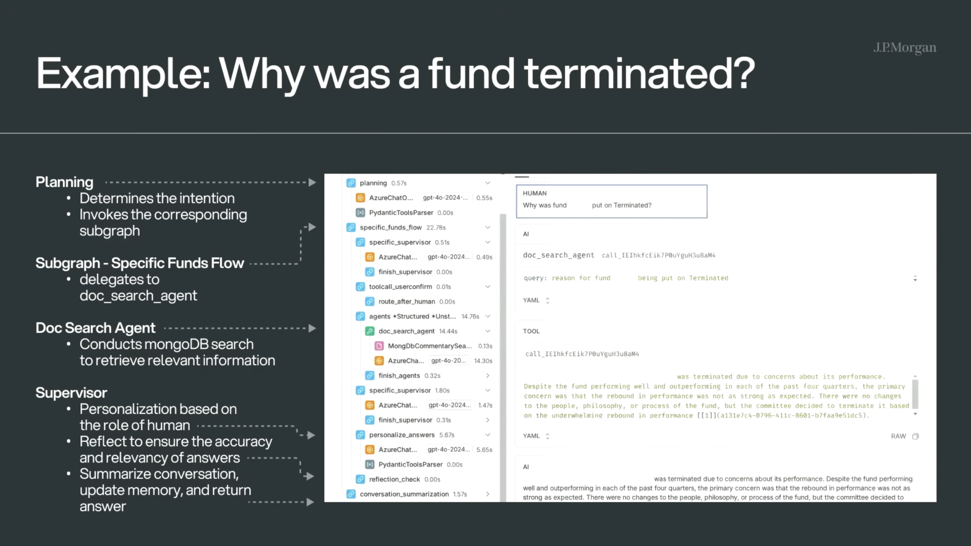 На картинке выше можно увидеть, что оператор уточняет у LLM причины закрытия фонда. Нейросеть же с помощью RAG анализирует доступную документацию и формулирует понятный ответ. На кону — миллиарды долларов, на секундочку! Это к вопросу о доверии AI-агентам.