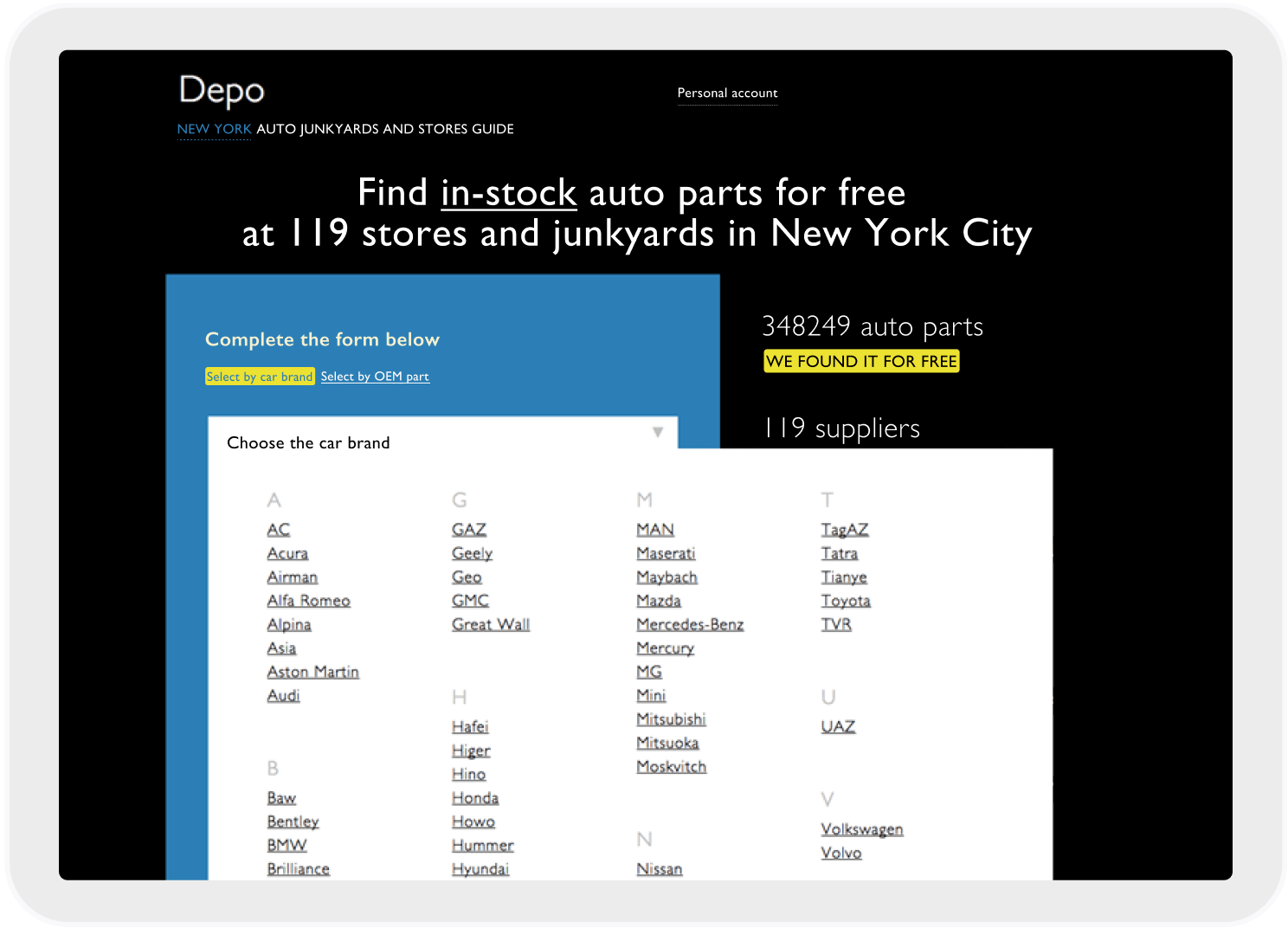 We developed a website and then an app so that users could find whatever auto parts they need in a snap.