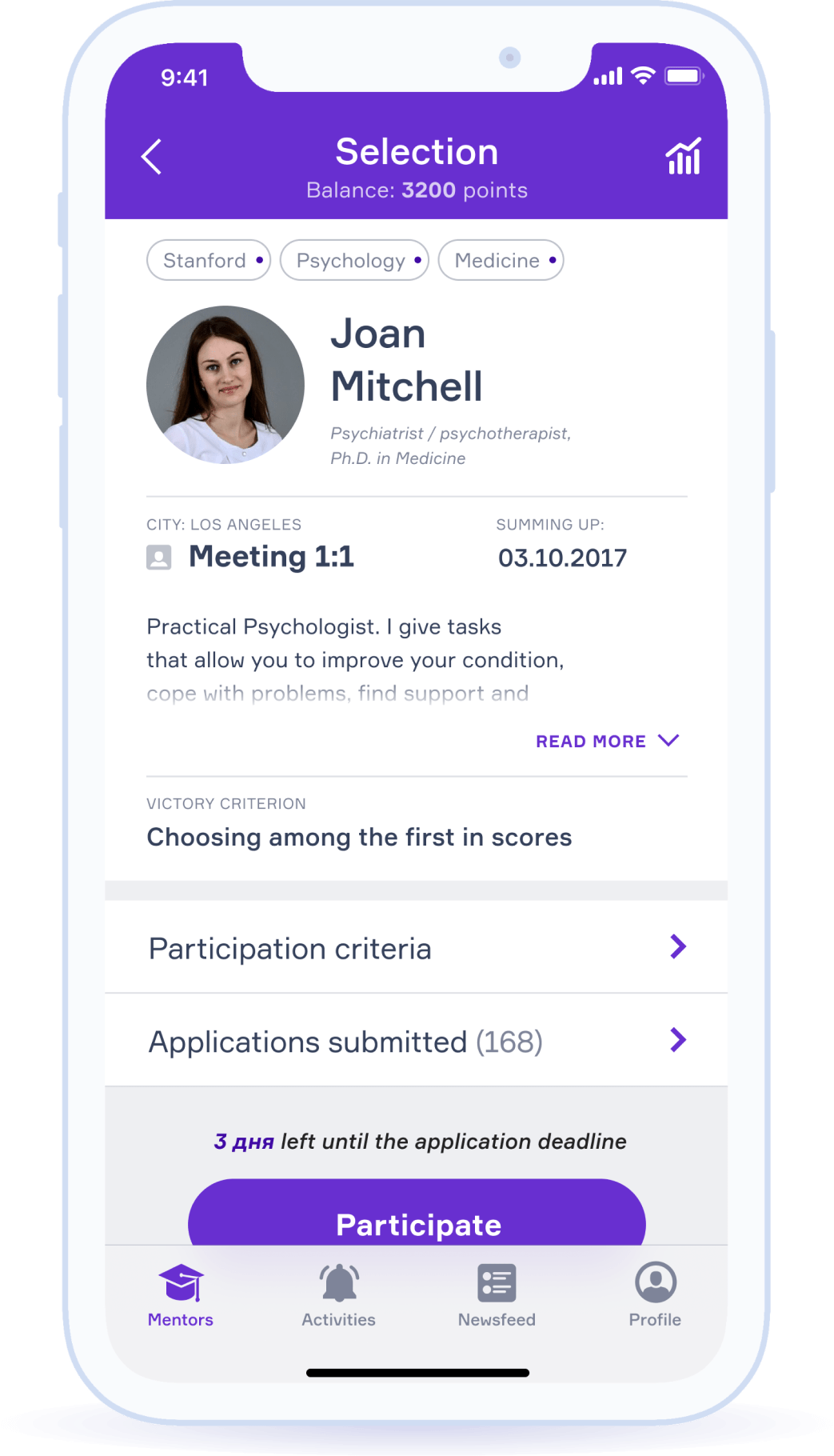 A mobile application allowing to find a mentor in any sphere of activity, to pass selection to him and to learn from him.