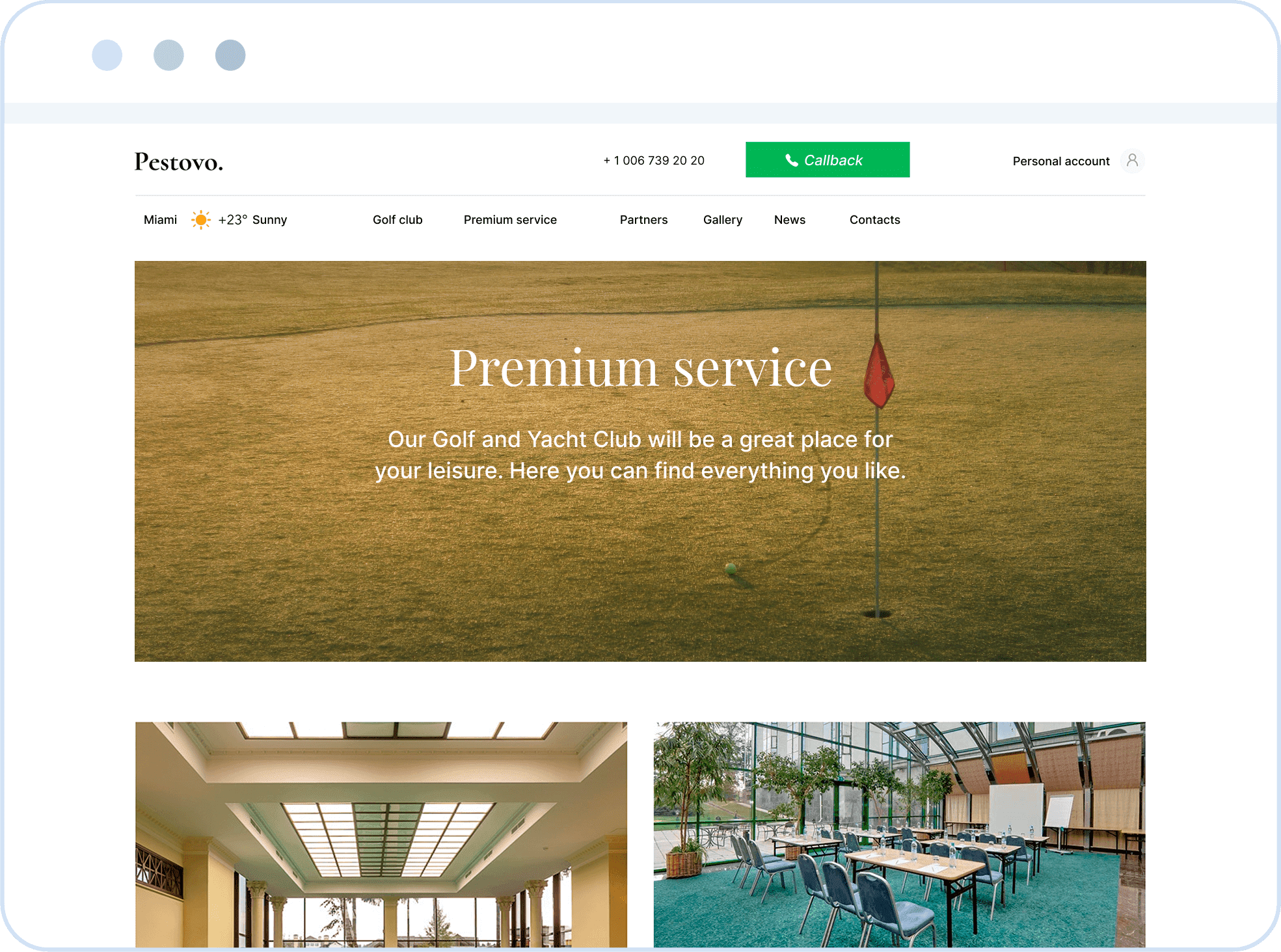 Website for golf and yacht club allows members to book and pay for games, sign up for training sessions with a coach, learn about club events and communicate with support.