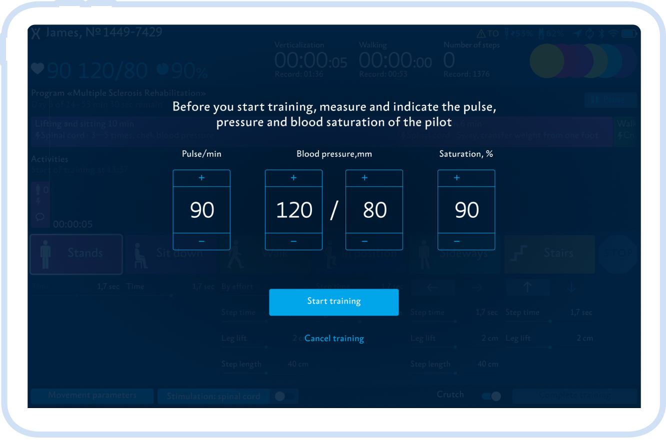 ExoAtlet Bambini allows data to be downloaded from the ExoAtlet server and patient information to be added to a tablet. Using this data, the doctor creates an exercise program for a particular patient based on his or her health condition and diagnosis.