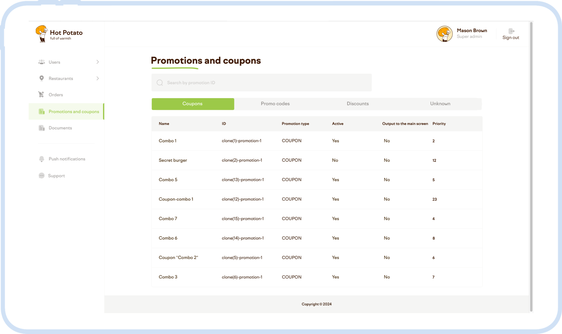 The project architecture consists of two parts: the client’s backend + a mobile app backend. Our analysts prepared a technical specification for the app’s development and all further work was carried out in close cooperation with the backend developer of the restaurant chain’s IT team. An admin panel to manage user onboarding, menu settings, promotions, coupons, and promo codes was created on the client’s side as well.